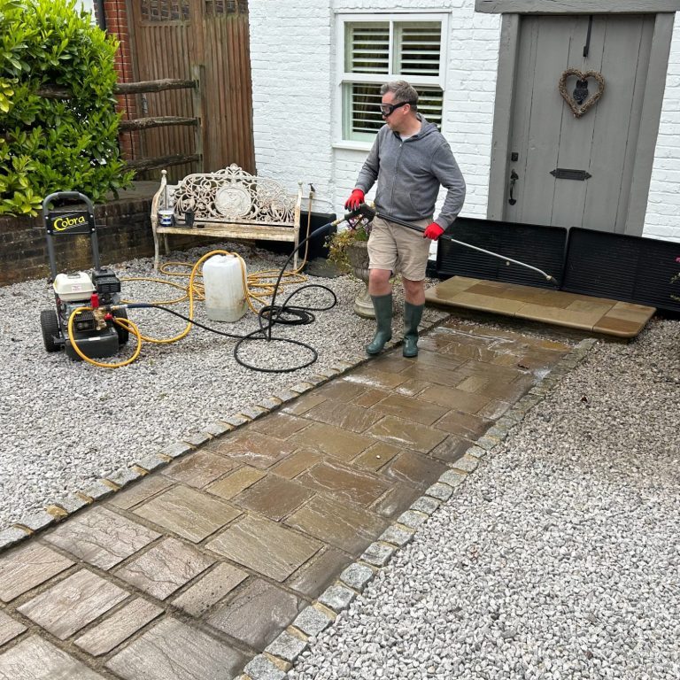 A lovely little clean, no issues with drainage, which is a always great, the patio made from Indian Sandstone came up really well, I was really pleased.